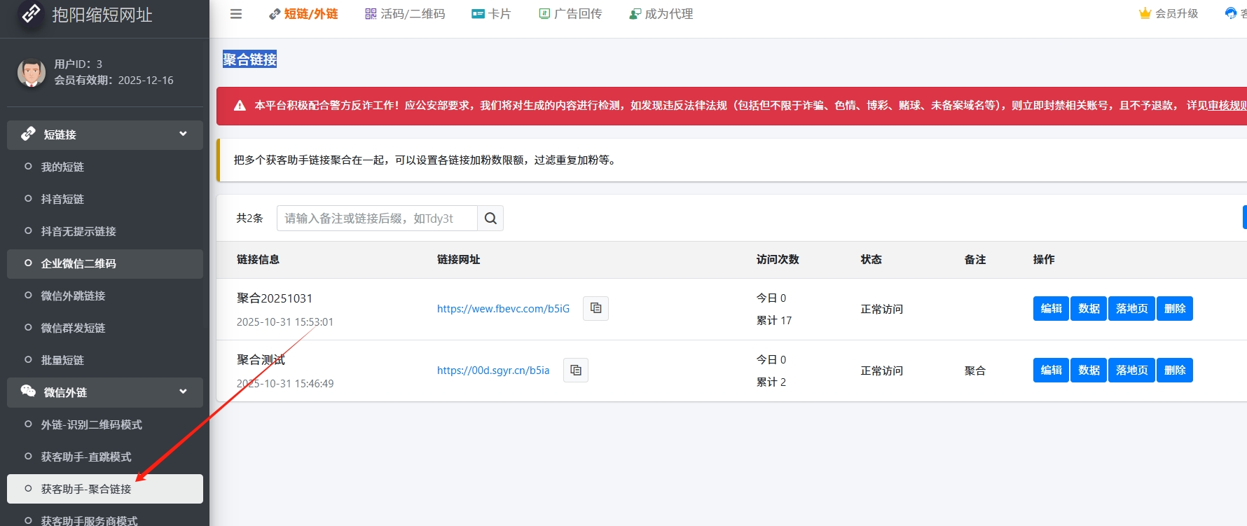 2. 如果需要把多个企微主体的链接合并为一个链接,除了使用前一个短链功能,也可以使用【获客助手-聚会链接】