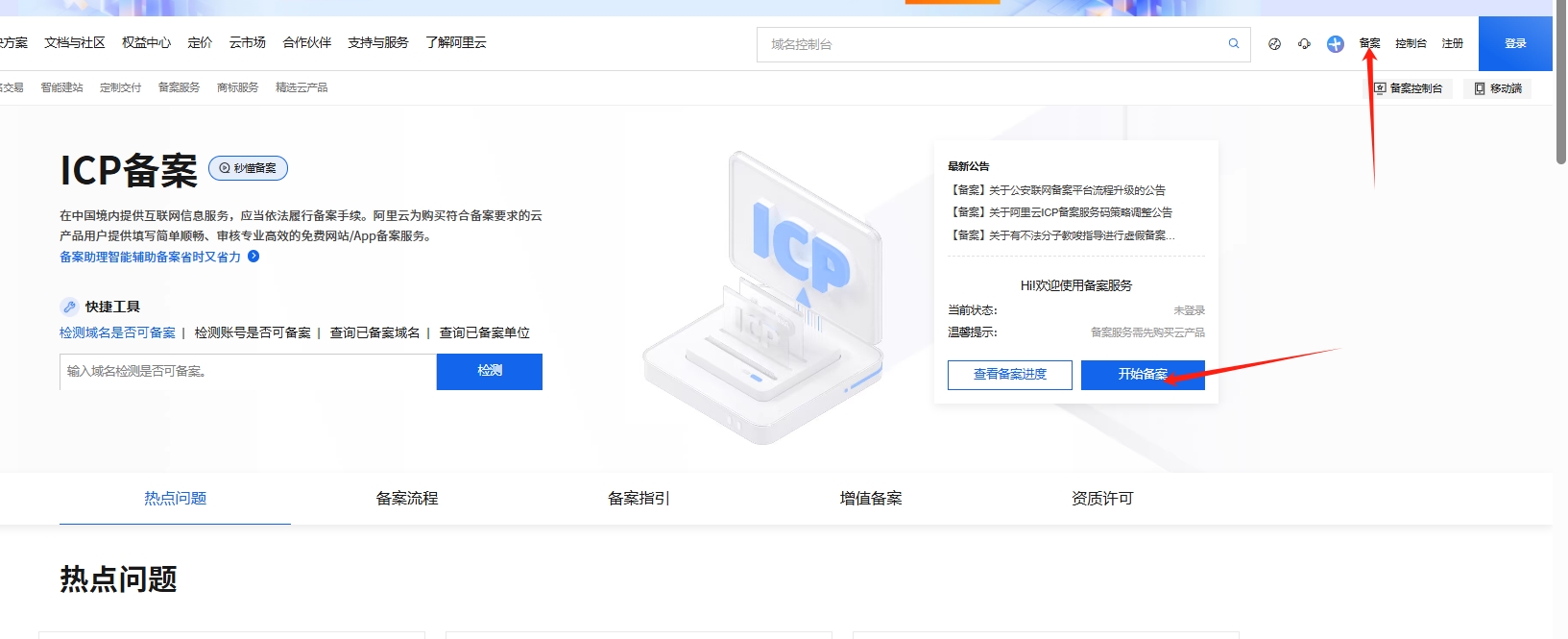 注册完成后需求去备案域名,备案需要备案号,可以直接购买备案号(100元/个),或者购买最便宜的主机(99元/年)送5个备案号(推荐),根据备案流程完成备案
