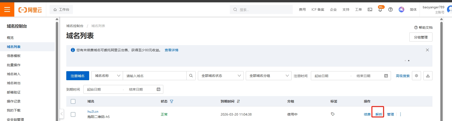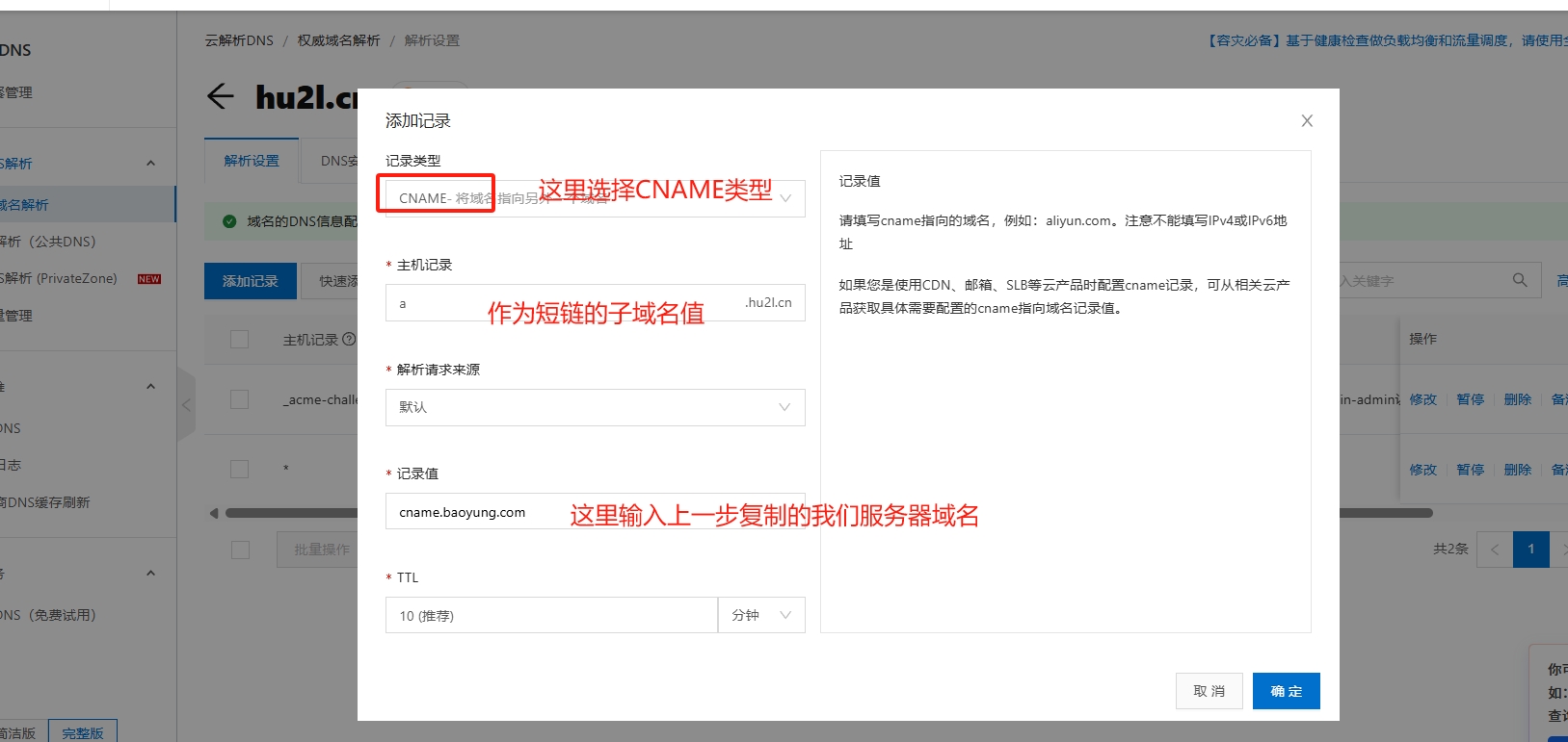 二、到域名服务商配置CNAME,下面以阿里云为例