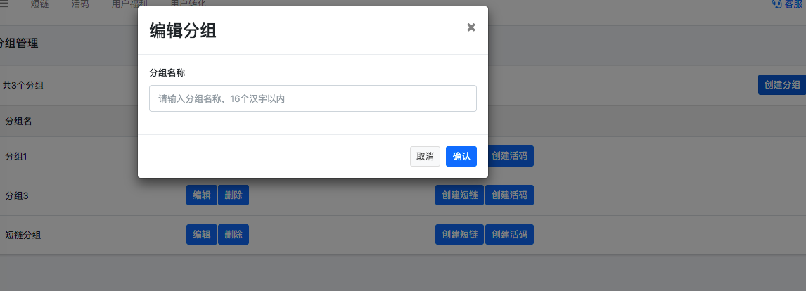 你新增、编辑短链、活码时,可以选择自己的分组