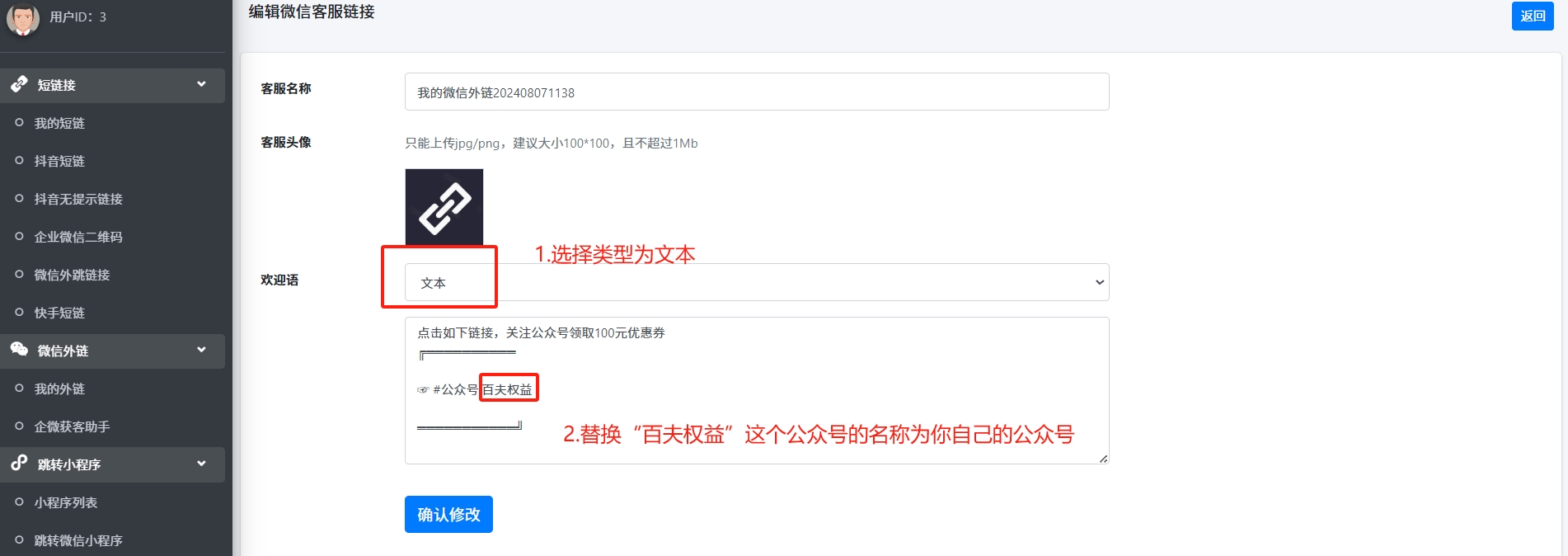 1. 进入管理后台->短链/外链->微信外链->我的外链