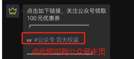 效果为:用户点击链接->直接显示公众号的名称->点击名称,直接跳转到公众号的主页
