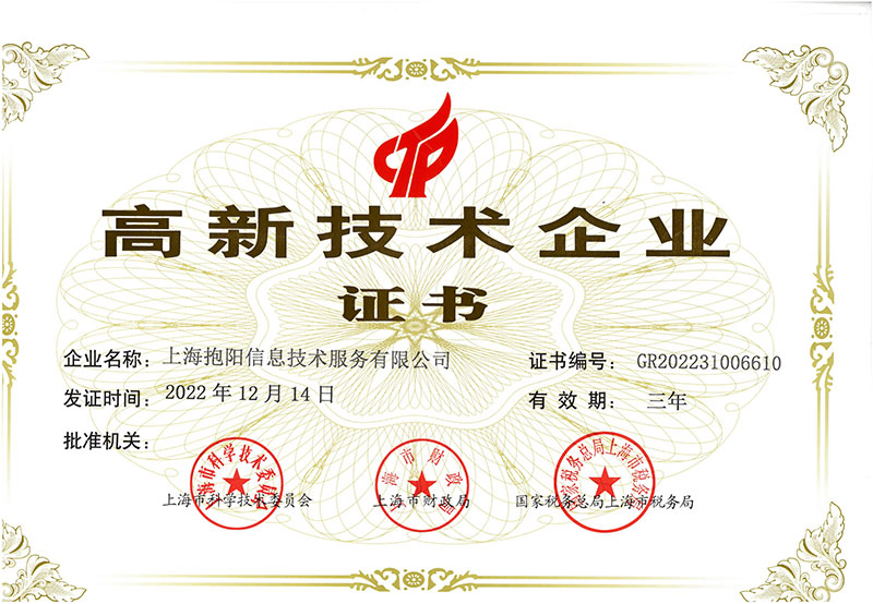 我们专注于企业客户技术服务的公司,公司创办以来,一直坚持以产品和技术为核心竞争力,期望和用户共同成长,打磨出更好用的产品,为用户真正创造价值。由于拥有技术的先进性和高度的客户满意度,我们公司在2022年被评为《高新技术企业》